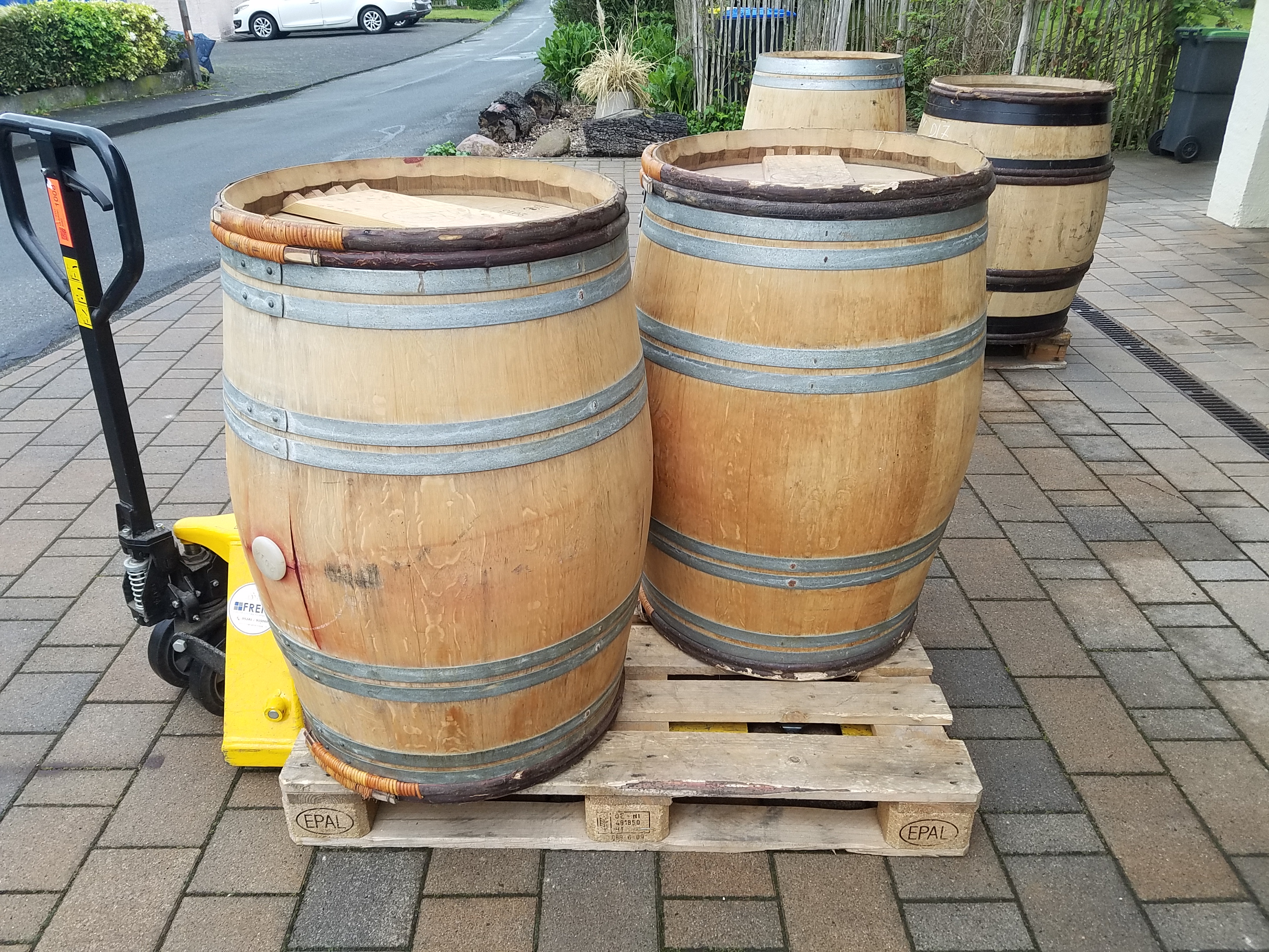 herum. Aus französischer Limousin-Eiche. Vorher mit Rotwein belegt, ca. 4